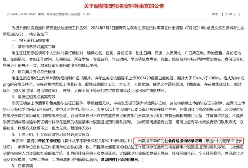 2024年5月,山東、陜西、云南、河南,甘肅5省均要求新增6個(gè)月社保證明。同時(shí),河北站發(fā)布關(guān)于調(diào)整報(bào)名資料審核公告,新增報(bào)名資料真實(shí)性現(xiàn)場抽查環(huán)節(jié)。